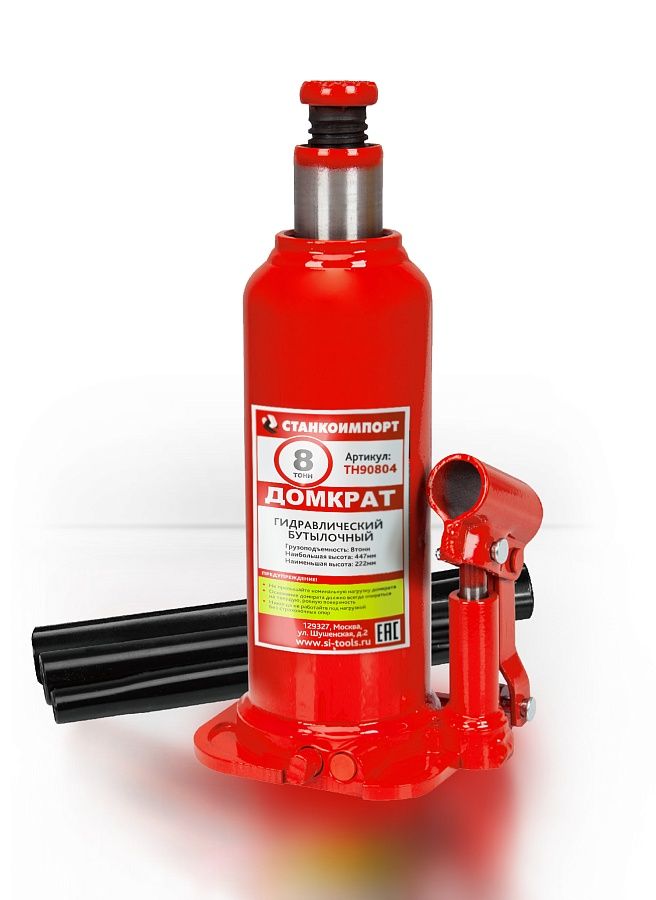 Домкрат бутылочный грузоподъемностью до 8 тонн используется при ремонте и техническом обслуживании транспортных средств, для поднятия тяжестей при строительстве или ремонтных работах.