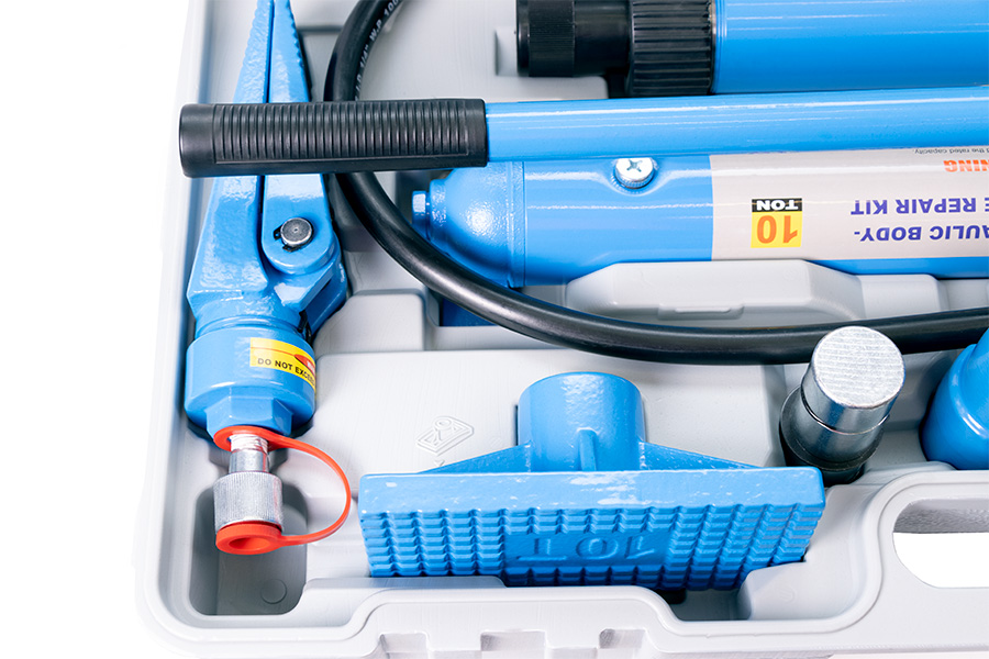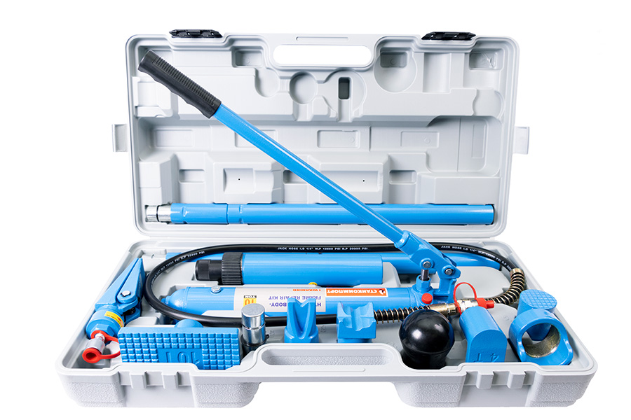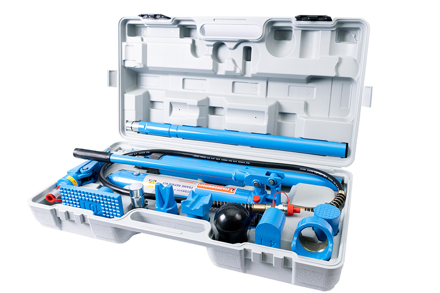 Гидравлический набор используется в автомастерских и сервисных центрах для ремонтных работ. Модель позволяет восстанавливать элементы кузова.