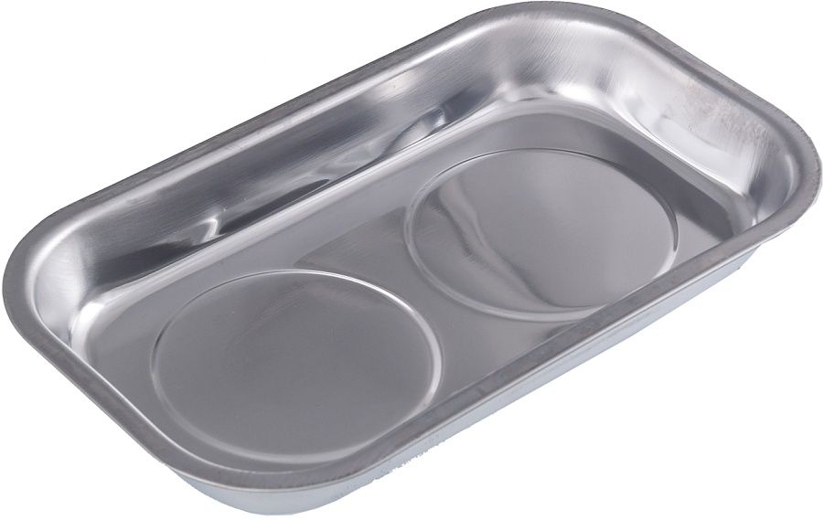 Лоток изготовлен из нержавеющей стали, что препятствует образованию коррозии. Удобен при работе с различными агрегатами позволяет надежно хранить демонтированный крепеж.