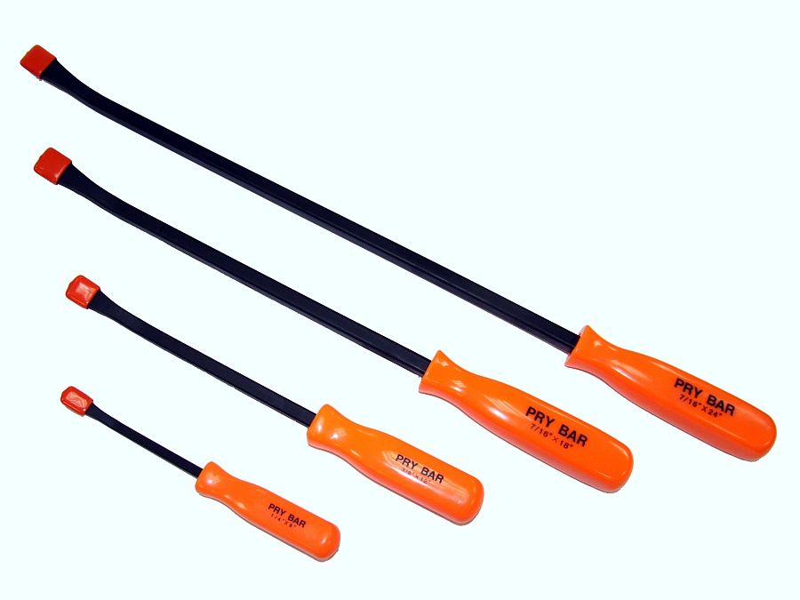 Изготовлены из высокопрочного кованого металла. Каждая монтировка для удобства использования оснащена эргономичной пластиковой ручкой, а так же силиконовым защитным колпачком рабочей лопатки. Яркий цвет ручек позволяет легко найти монтировку.