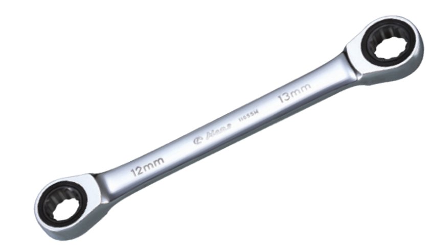Накидной гаечный ключ с трещоточным механизмом представляет собой конструкцию, состоящую из двух накидных профилей самых популярных или соседних размеров.