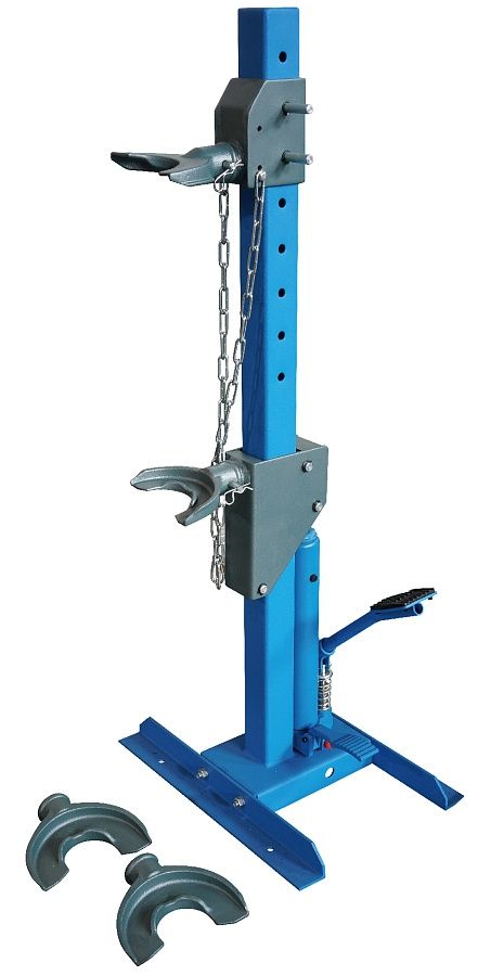 Стяжка пружин, гидравлическая упрощает замену амортизаторов на автомобилях различных классов, от легковых до небольших грузовиков. Конструкция включает гидравлический цилиндр, что исключает усилие со стороны мастера.