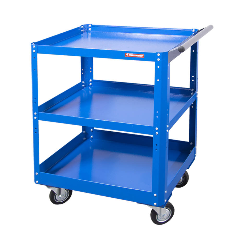 Открытая инструментальная тележка на колесах с тремя полками идеально подойдет для перемещения и хранения инструментов, оборудования, крепежа и других предметов, которые используются на ремонтных предприятиях.