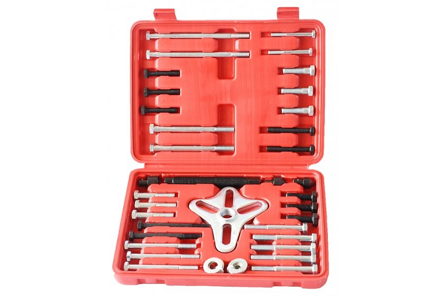 Набор удобен в работе и, благодаря различным фиксирующим болтам и центрующим насадкам, является универсальным. Подходит для большинства марок и моделей легковых автомобилей.