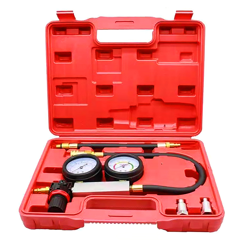 Представляет собой специальное приспособление с  двумя манометрами при помощи которого можно выявить целый ряд таки неисправностей как, плотность прилегания клапанов, целостность прокладки головки блока цилиндров, выявить трещины в стенках цилиндров, проверить плотность прилегания поршневых колец двигателе внутреннего сгорания.